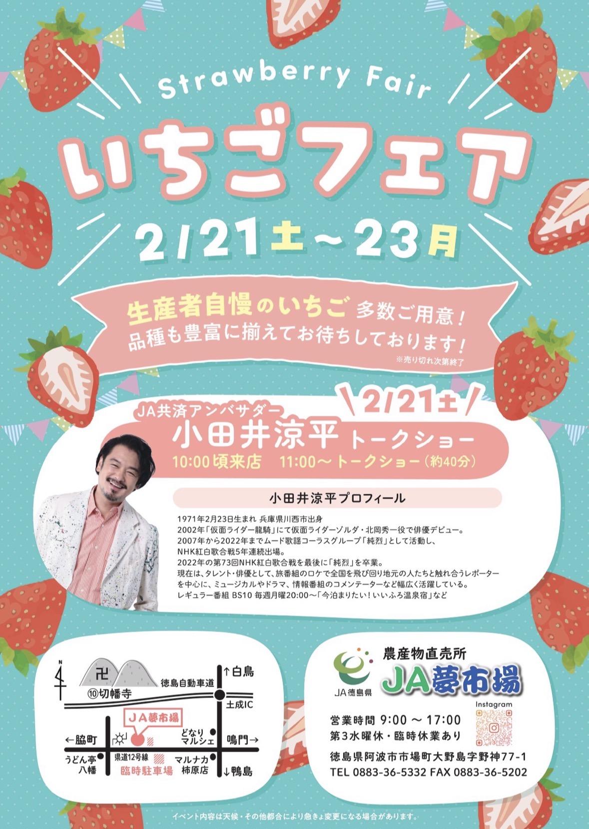 徳島県・JA夢市場にて開催される「いちごフェア」に出演いたします。